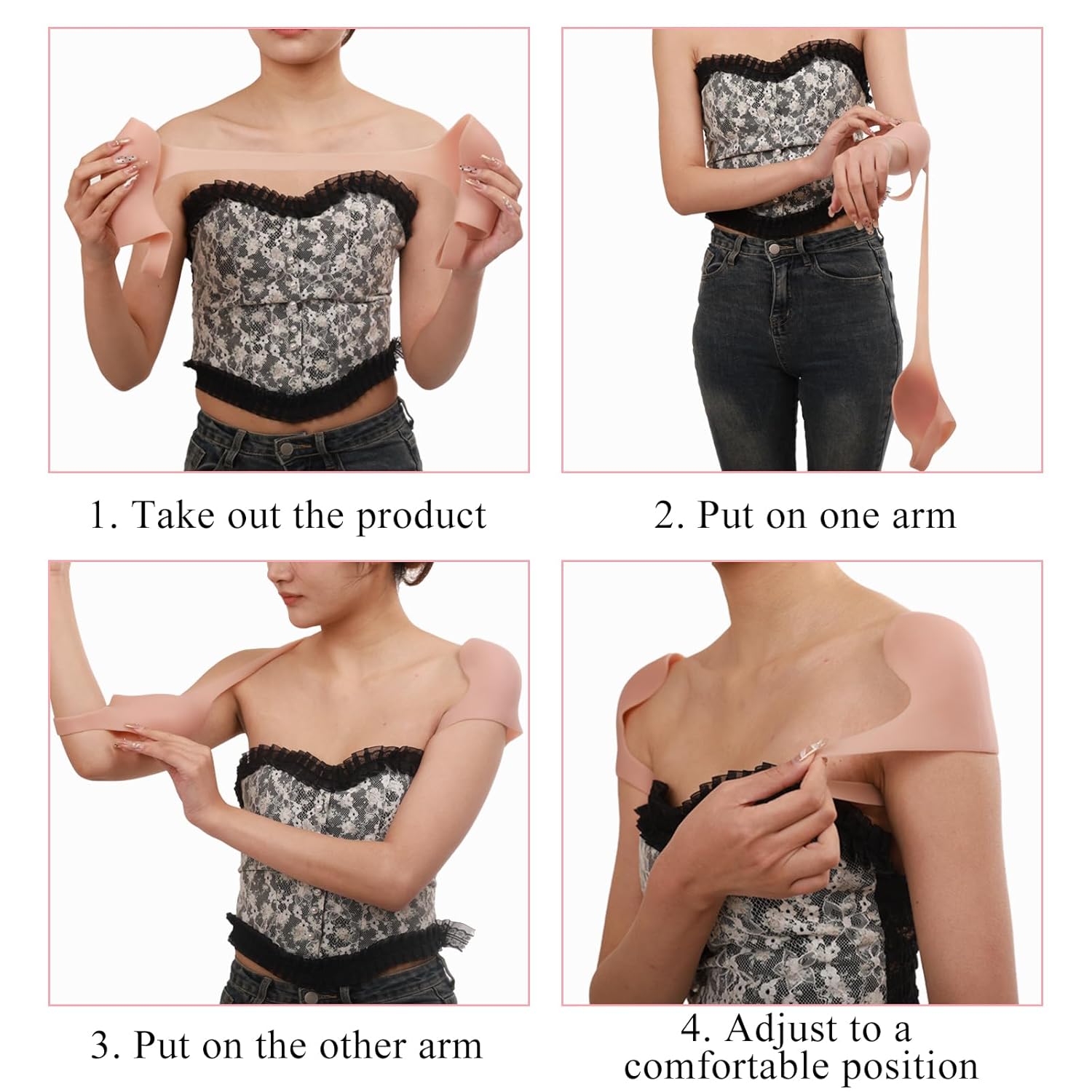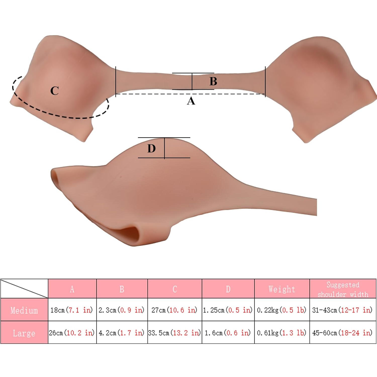 We provide two sizes of silicone shoulder pads, and you can choose the appropriate style based on the size chart.