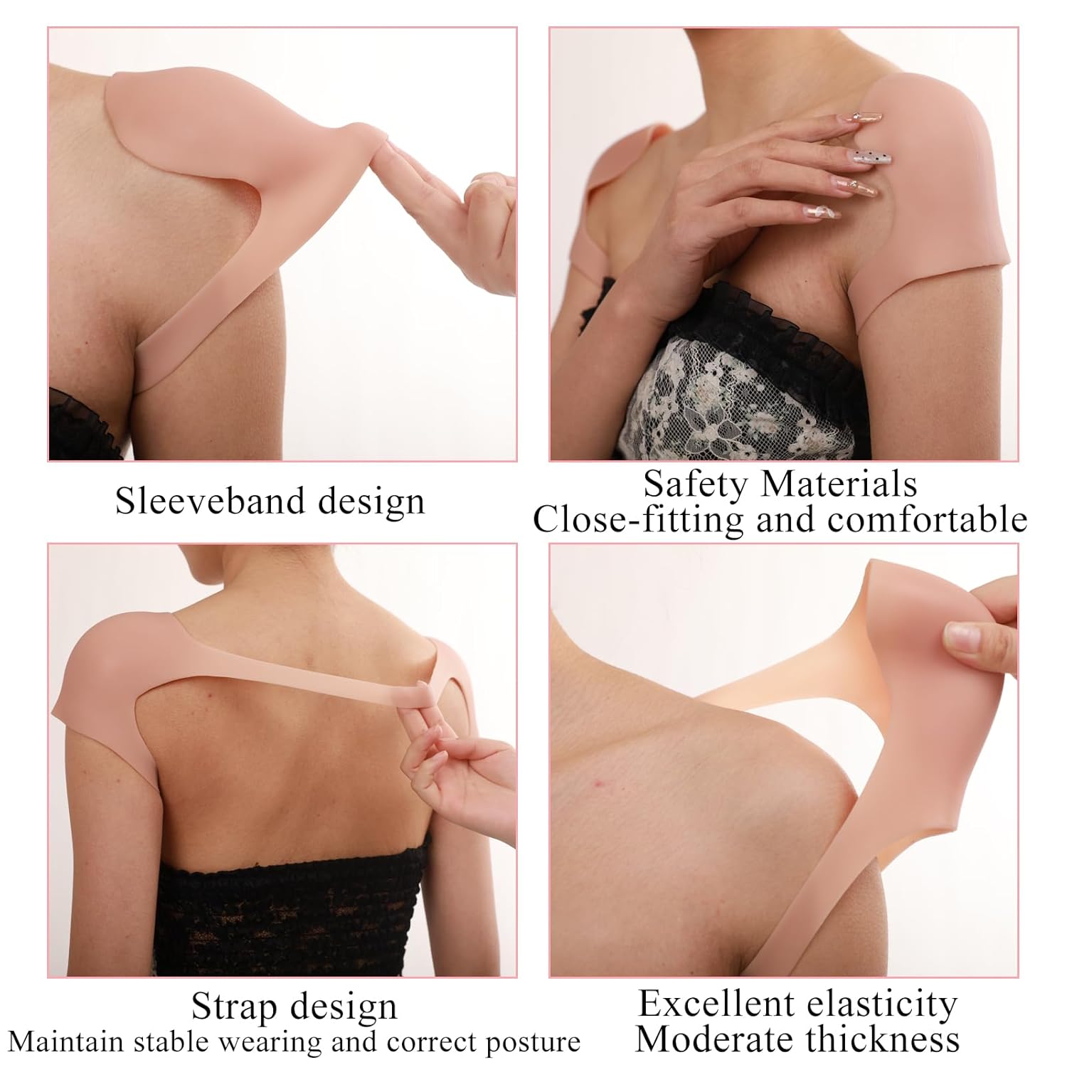 The shape of this silicone shoulder pad is rectangular, perfectly conforming to the curve of the shoulder, avoiding discomfort or a feeling of being bound when worn.