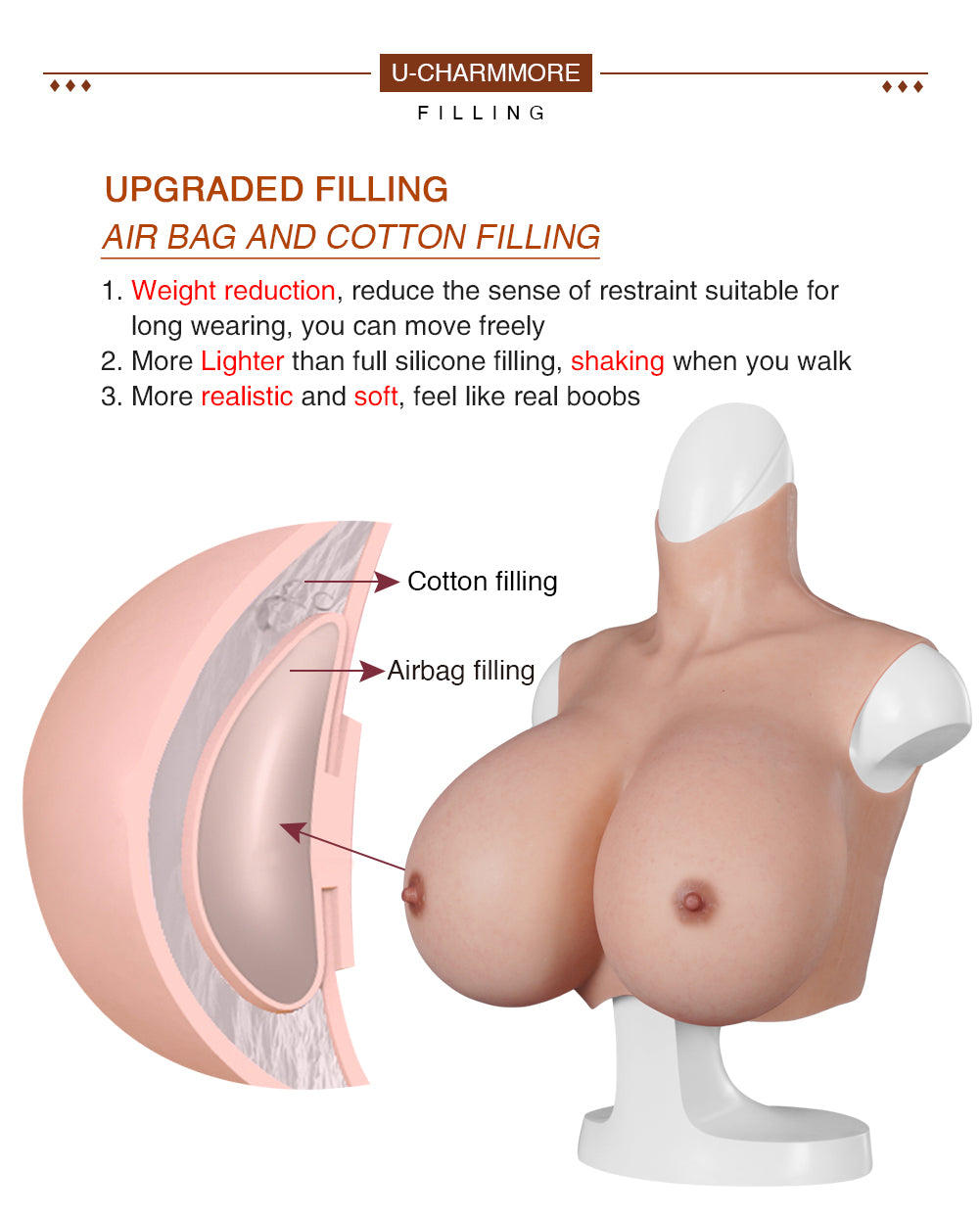 S And Z Cups With Bloodshot Silicone Fake Boobs U-CHARMMORE Realistic Breast Forms Tits For Crossdresser Drag Queen Sissy Boy