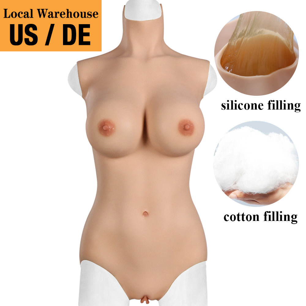 Free shipping,30 days no reason to return,1: 1 woman body ratio, fully enclosed liquid silicone looks more vivid and feels softer. Simulated female vulva penetrable design. This body suit adds to the curves of the hips and buttocks to create a more feminine shape.